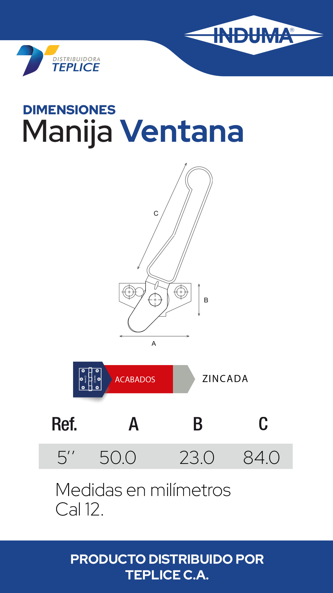 Manija con mango fabricado en plástico vulcanizado. Su instalación puede ser con soldadura, tornillos o remaches.